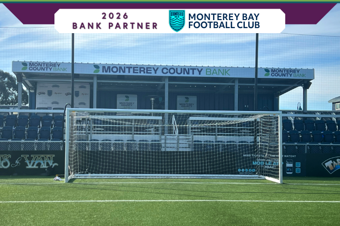On the pitch and in the community, we’re excited to partner with Monterey Bay Football Club as the Official Banking Partner and Lounge Sponsor for 2026! For more information about MBFC and the 2026 season, visit montereybayfc.com.